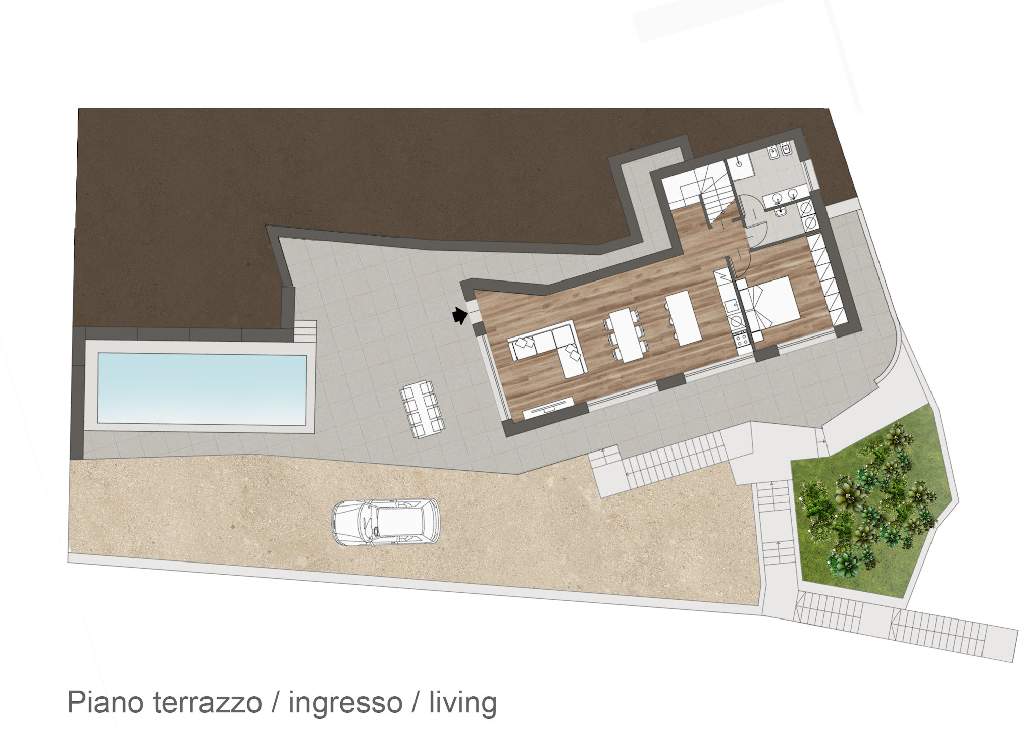 Il progetto prevede la realizzazione di una villa di 170mq con un'ampio soggiorno con cucina a vista di 43mq, 3 bagni, una lavanderia e 4 stanze da letto, di cui una grande padronale con bagno privato, cabina armadio e terrazzino.